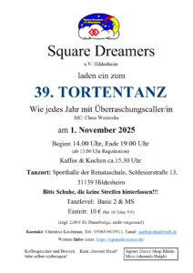 Die Geschichte der Square Dreamers ist untrennbar mit der Geschichte des „Tortentanzes“ verbunden. Dieses Jahr führen wir im 39. Jahr unseres Bestehens, den 36. Tortentanz durch.
